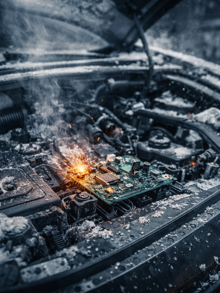 車載環境では、エンジンルーム内の110℃を超える熱に加え、氷点下から一気に加熱される「熱衝撃」、さらには「振動・湿度・電気的ノイズ」といった多軸の複合ストレスが同時に作用します。これらが相乗効果(シナジー)を生み、民生設計の想定を遥かに超える速度で劣化モードを顕在化させるのです。
